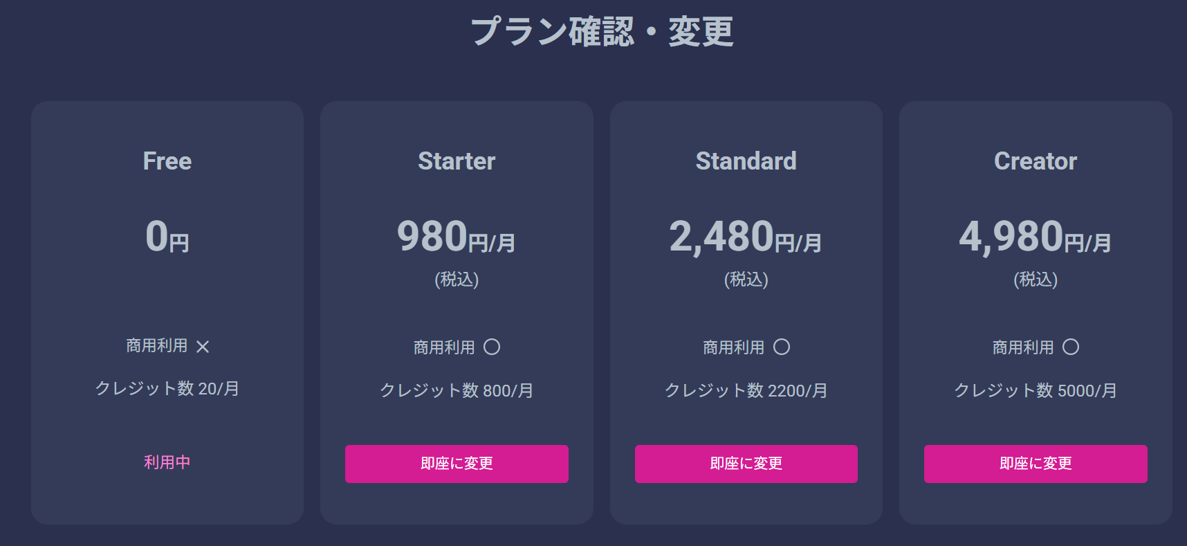 使うとすると、基本的に必要な時に有料プランして、終わったらフリーに戻すみたいな使い方になりそうなサービスです。