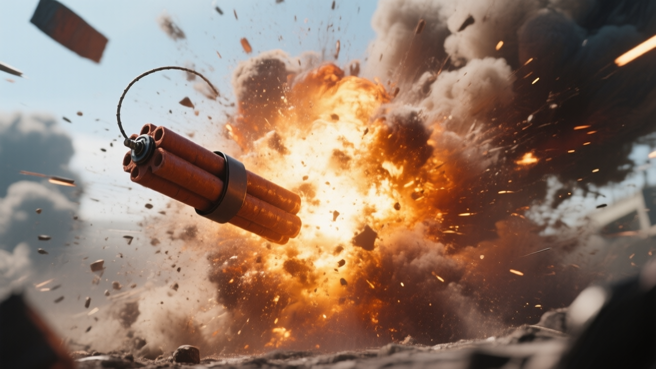 爆発しているのに、ダイナマイトの存在が見えるというシュールな画像が作成されました。