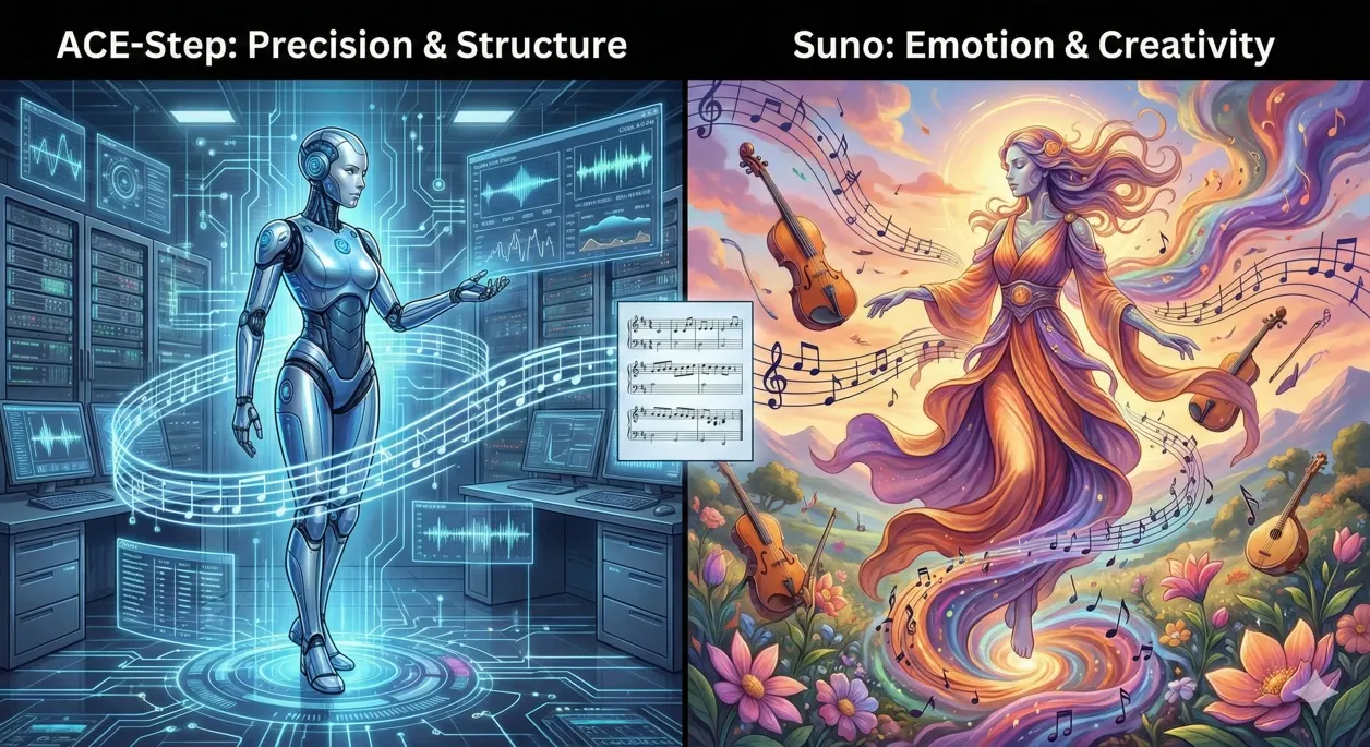 ここで、「ACE-Step」と「suno」の違いを比較してみます。